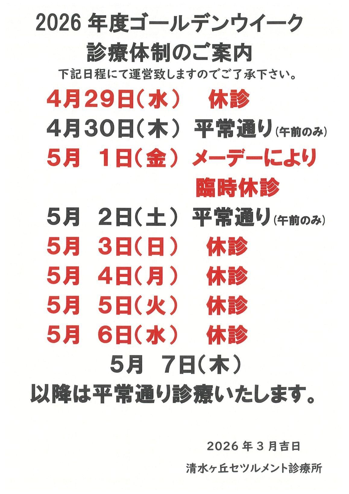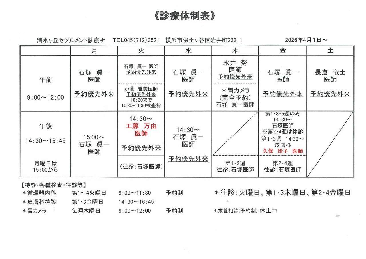 木曜午後・第2、4金曜午後・ 土曜午後・祝日祭日